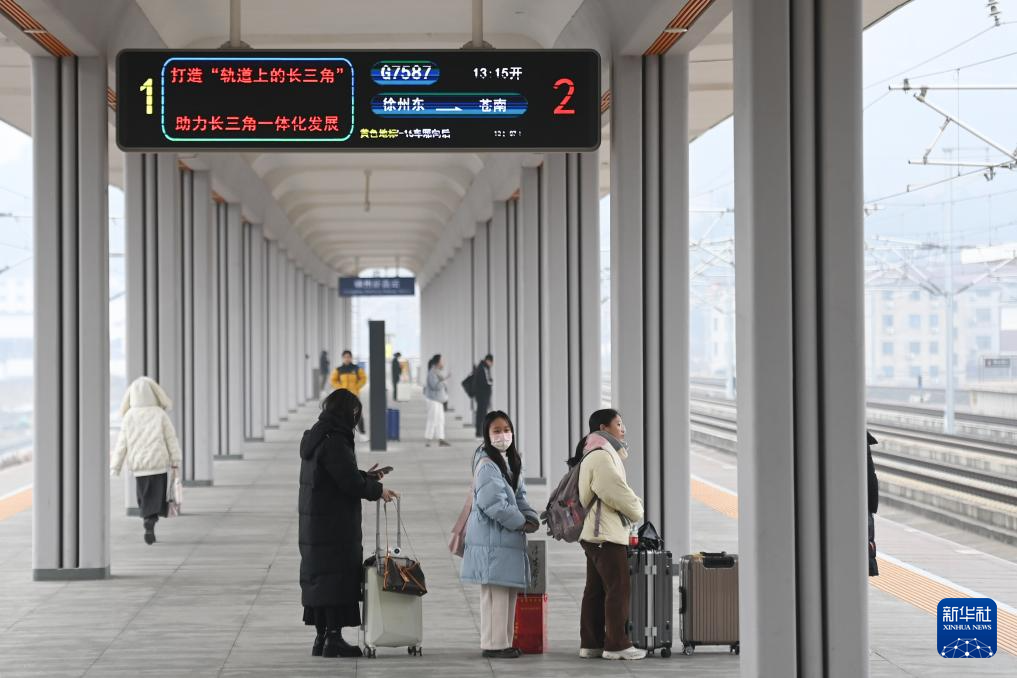 1月8日,旅客在紹興嵊州新昌站等待列車進(jìn)站。