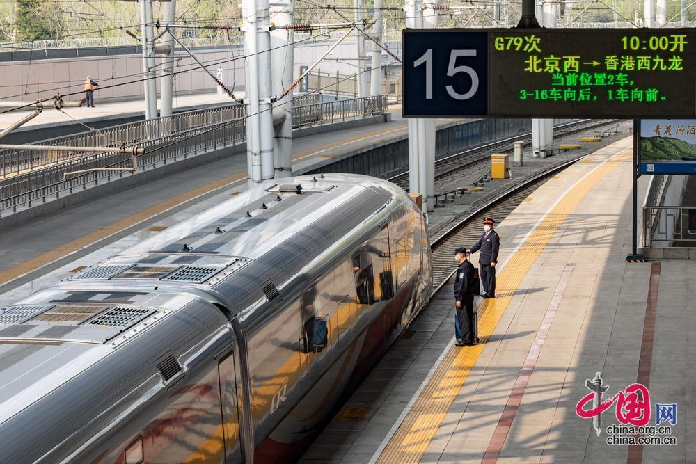 2023年4月1日,京津冀首趟至香港西九龍高鐵列車即將開出北京西站(資料圖)。中國網(wǎng)記者 鄭亮攝