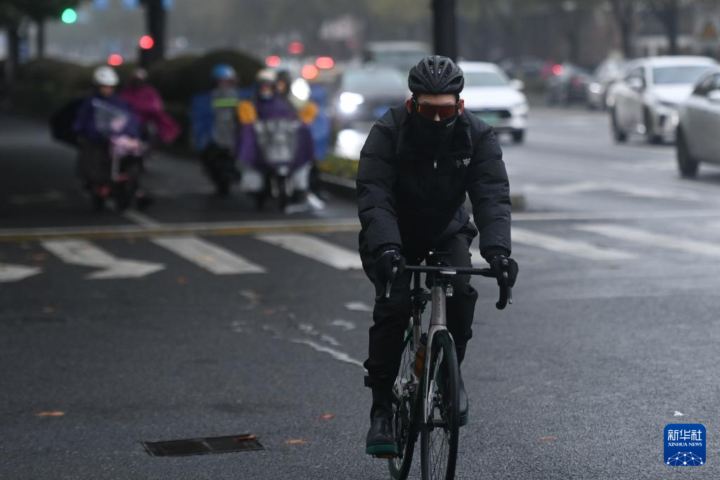 1月19日,市民在浙江杭州城區(qū)騎行。
