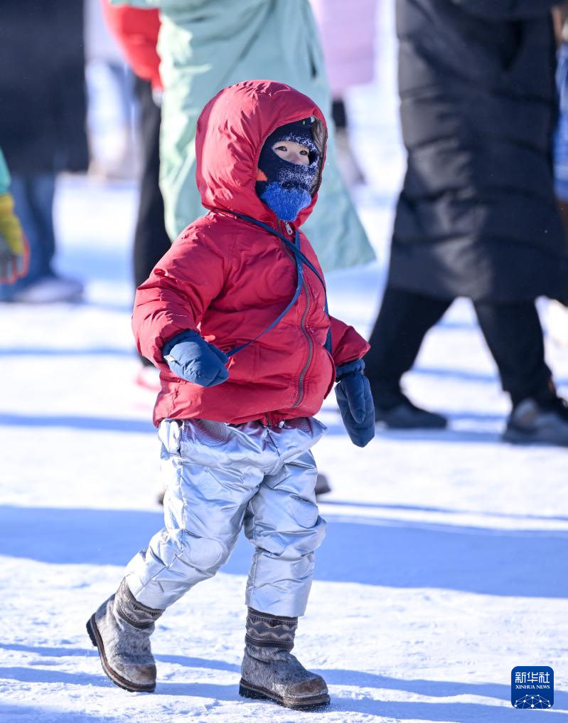 1月19日,一名兒童在內(nèi)蒙古呼倫貝爾市海拉爾河西新區(qū)一處公園參加戶外活動(dòng)。