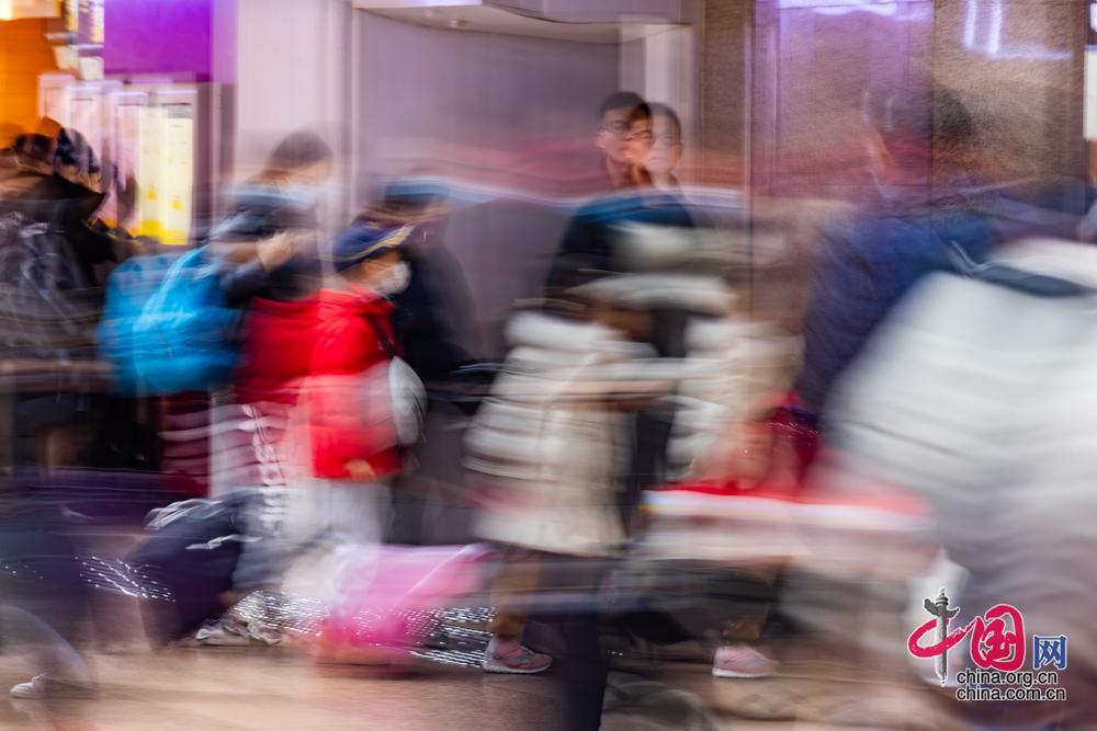 2024年1月26日,乘坐春運首日北京地區(qū)首趟高鐵列車G6701次的乘客等待檢票。中國網記者 鄭亮攝