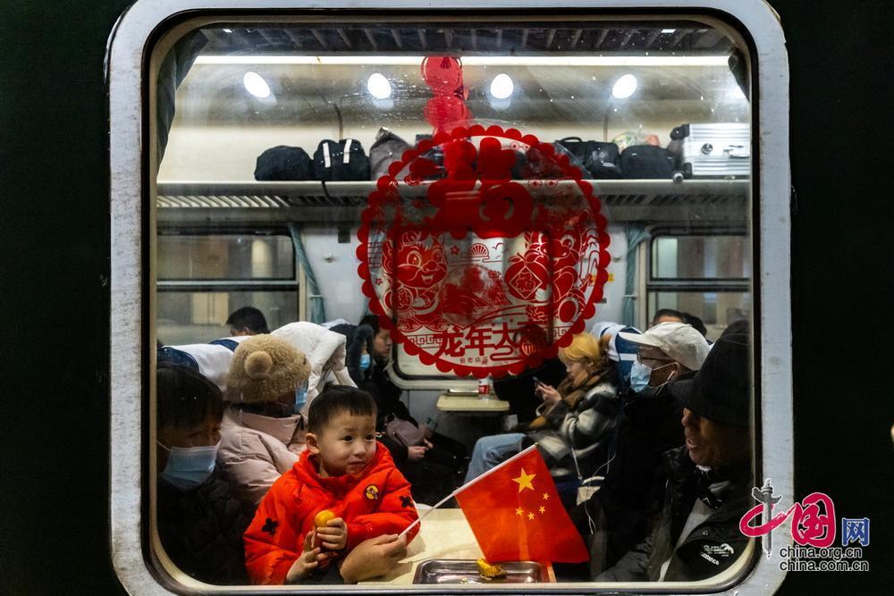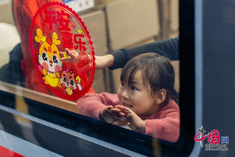 春運首日北京地區(qū)首趟普速列車K5207次上的溫馨裝飾。中國網記者 鄭亮攝