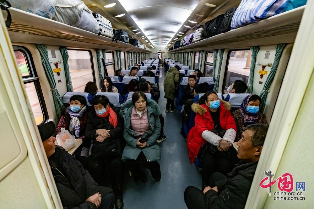 乘坐春運首日北京地區(qū)首趟普速列車K5207次的乘客。中國網記者 鄭亮攝