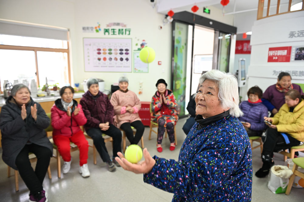 在江蘇省常州市天寧區(qū)茶山街道富強(qiáng)新村社區(qū)黨群服務(wù)中心,老人即興表演才藝(2024年1月9日攝)。常州市積極構(gòu)建15分鐘居家養(yǎng)老服務(wù)圈,建有鎮(zhèn)(街道)綜合性養(yǎng)老服務(wù)中心62家,實(shí)現(xiàn)街鎮(zhèn)全覆蓋。新華社記者 季春鵬 攝