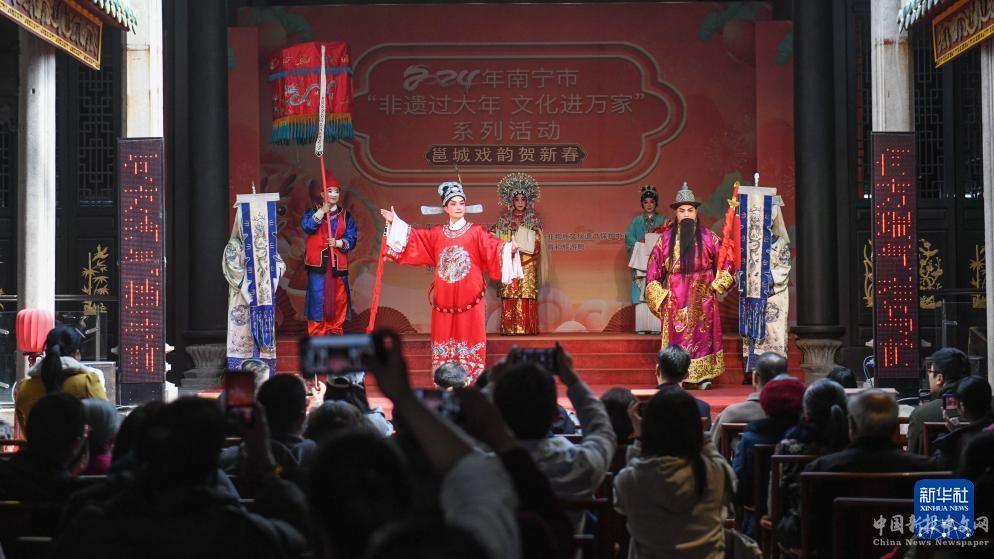 2月11日,人們在廣西南寧新會書院欣賞邕劇。