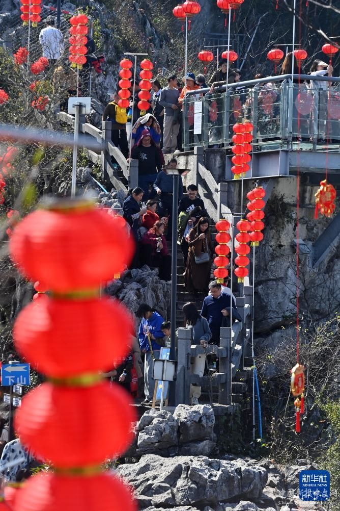 2月11日,人們在廣西柳州馬鞍山游玩。