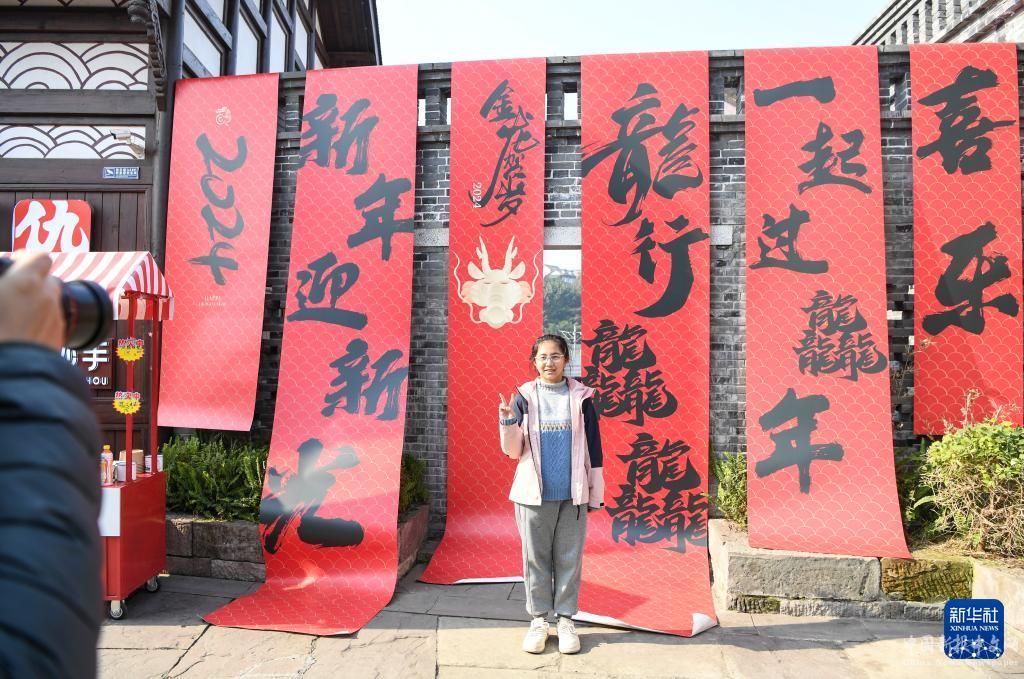 2月11日,游客在重慶磁器口古鎮(zhèn)拍照留念。