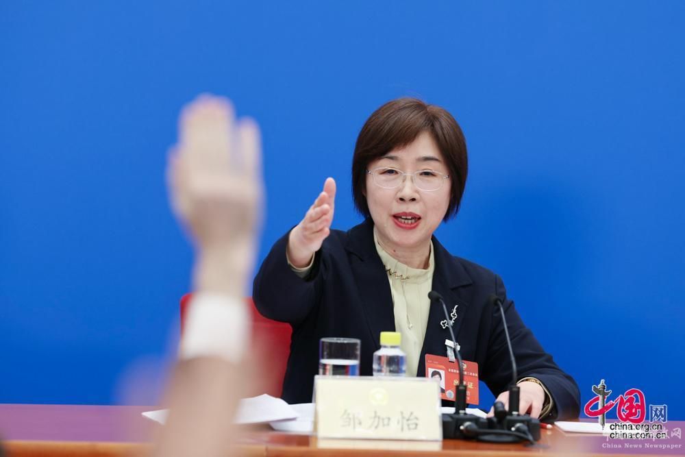 全國(guó)政協(xié)十四屆二次會(huì)議副秘書長(zhǎng)鄒加怡主持發(fā)布會(huì)。 中國(guó)網(wǎng) 董寧 攝影