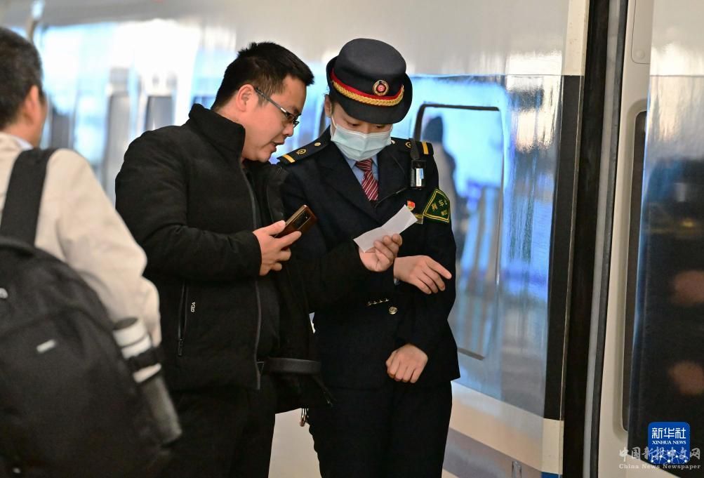 3月5日,旅客在廈門北站向G5065次列車的列車員咨詢車票坐席。