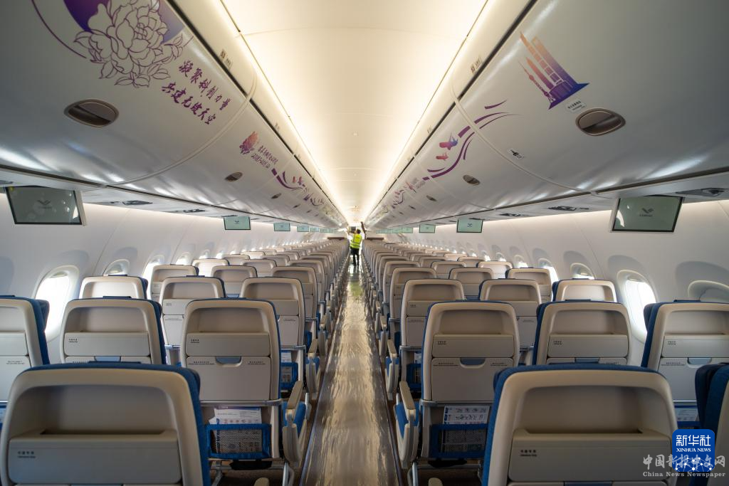 這是3月4日在老撾萬(wàn)象瓦岱國(guó)際機(jī)場(chǎng)拍攝的C919飛機(jī)客艙。新華社發(fā)(凱喬攝)