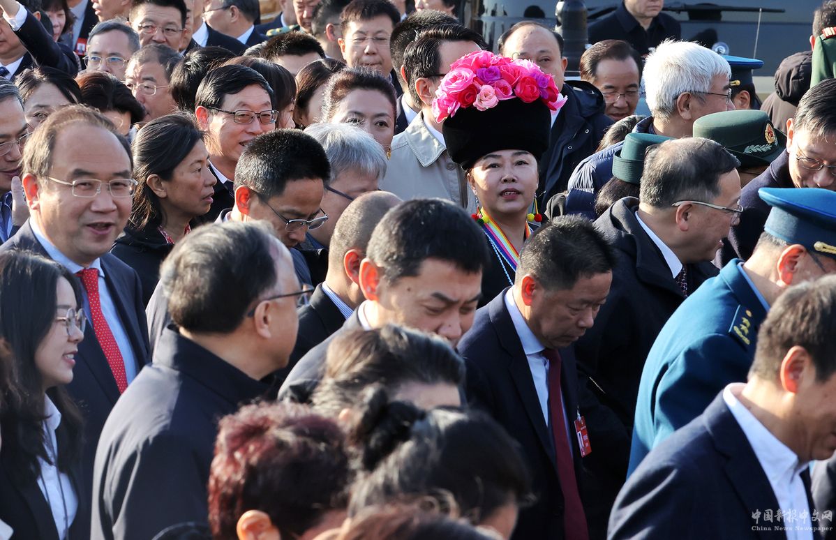 全國政協(xié)委員走向會場。中國日報記者 姜東 攝