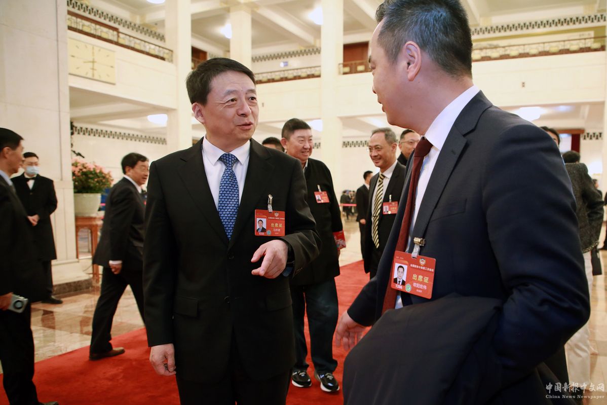 全國政協(xié)委員在會議前交流。中國日報記者 王敬 攝