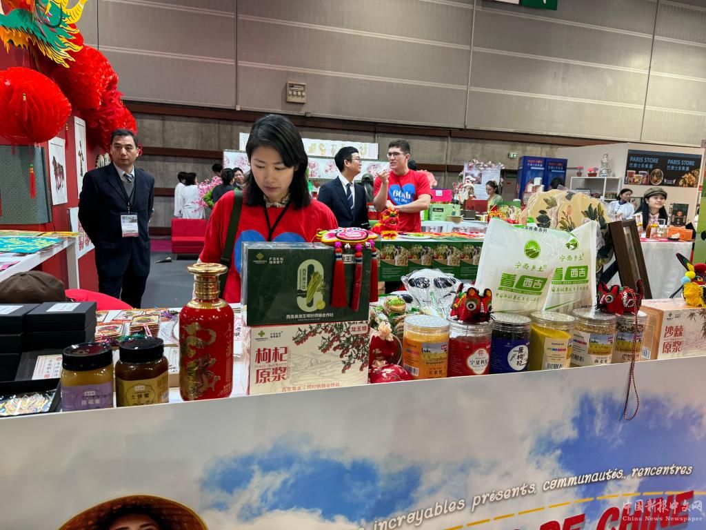 寧夏西吉縣龍王壩村特色農(nóng)產(chǎn)品和非遺文創(chuàng)產(chǎn)品亮相法國(guó)國(guó)際農(nóng)業(yè)博覽會(huì)(資料照片)。新華社發(fā)