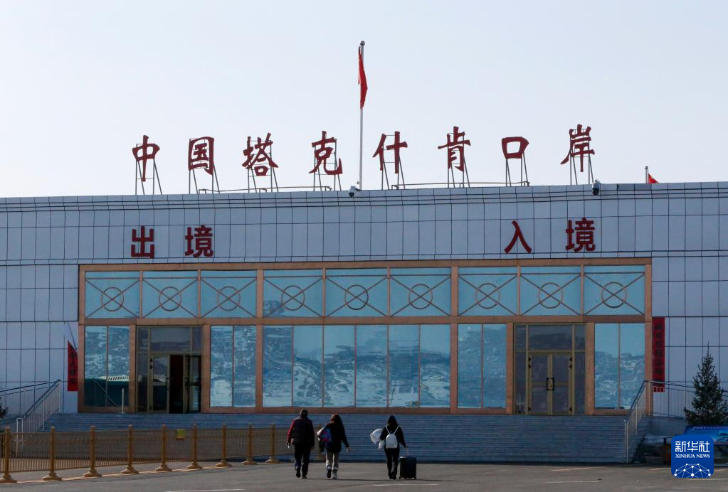 3月13日,在新疆塔克什肯口岸,從蒙古國來的3名旅客走向入境大廳。