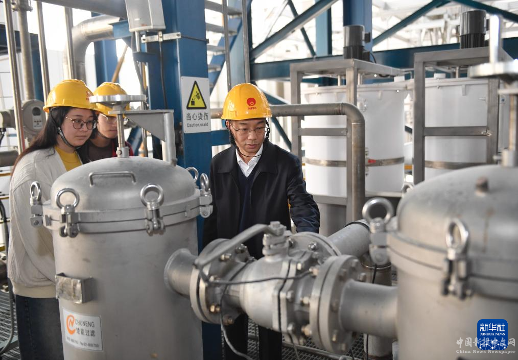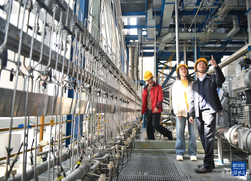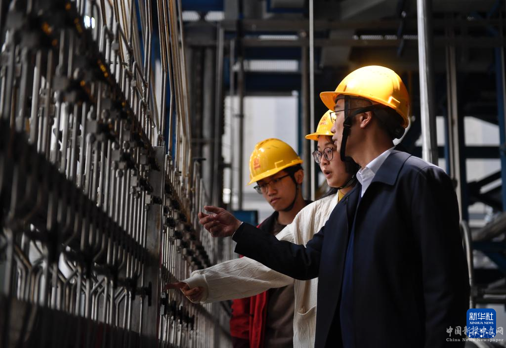 3月14日,在位于四川成都的中國核動(dòng)力研究設(shè)計(jì)院內(nèi),中核集團(tuán)“玲龍一號(hào)”總設(shè)計(jì)師宋丹戎(右一)與團(tuán)隊(duì)成員在“玲龍一號(hào)”試驗(yàn)臺(tái)架上溝通方案。