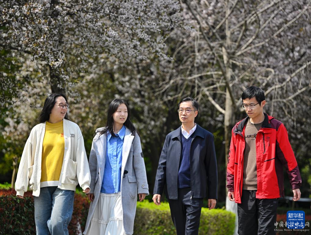 3月14日,在位于四川成都的中國核動(dòng)力研究設(shè)計(jì)院內(nèi),中核集團(tuán)“玲龍一號(hào)”總設(shè)計(jì)師宋丹戎(右二)與團(tuán)隊(duì)成員在散步交流。