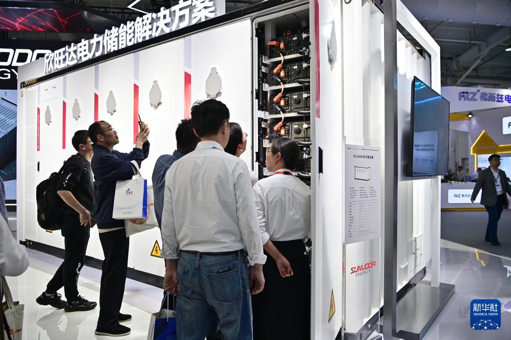 4月11日,參觀者在第十二屆儲能國際峰會暨展覽會上了解欣旺達(dá)電力儲能解決方案。