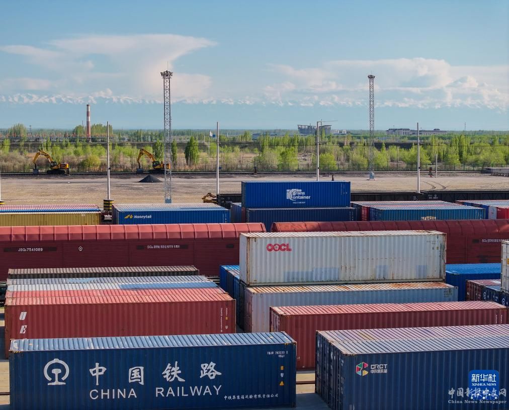 這是4月18日拍攝的霍爾果斯鐵路口岸換裝場(無人機照片)。