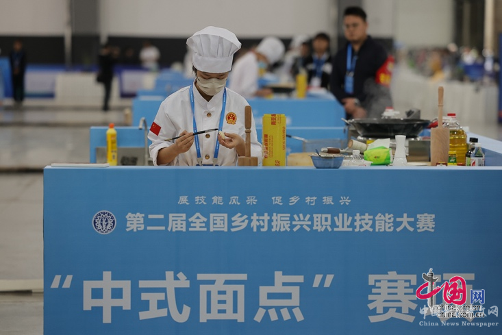 第二屆全國鄉(xiāng)村振興職業(yè)技能大賽“中式面點”賽項現(xiàn)場。中國網(wǎng)記者 董寧 攝影
