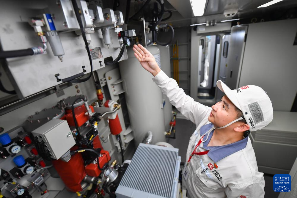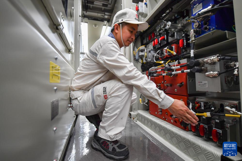 5月9日,工作人員在智能座艙內(nèi)查看機車運行狀態(tài)。