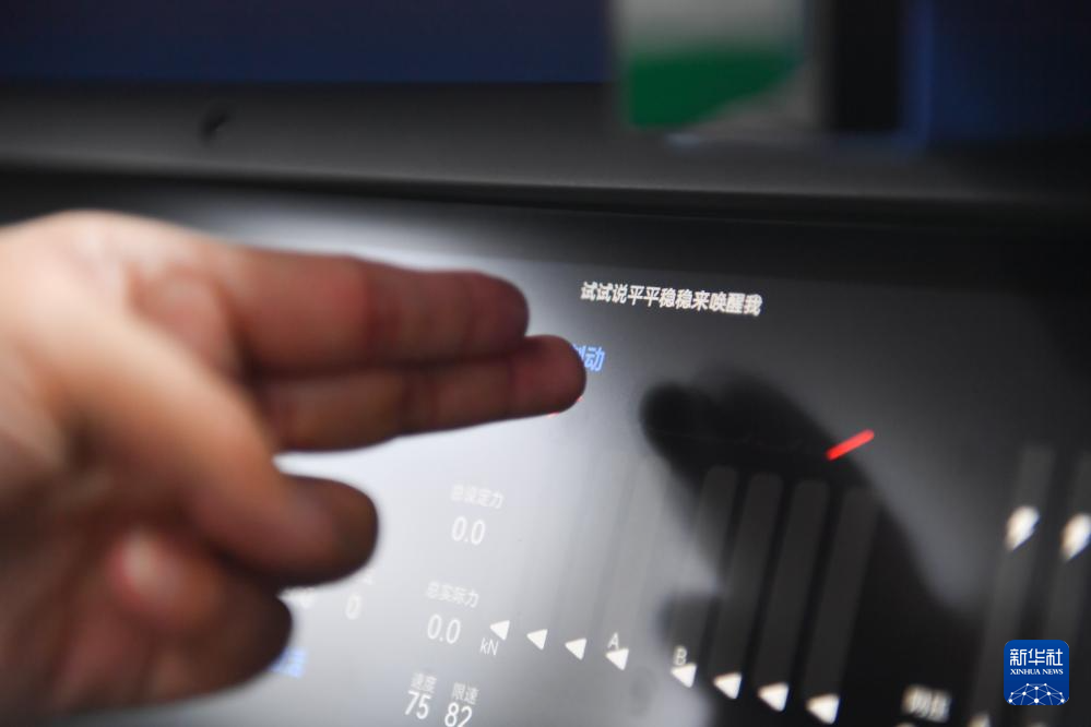 5月9日,工作人員在機車的智能座艙內(nèi)演示人工智能語音交互系統(tǒng)。