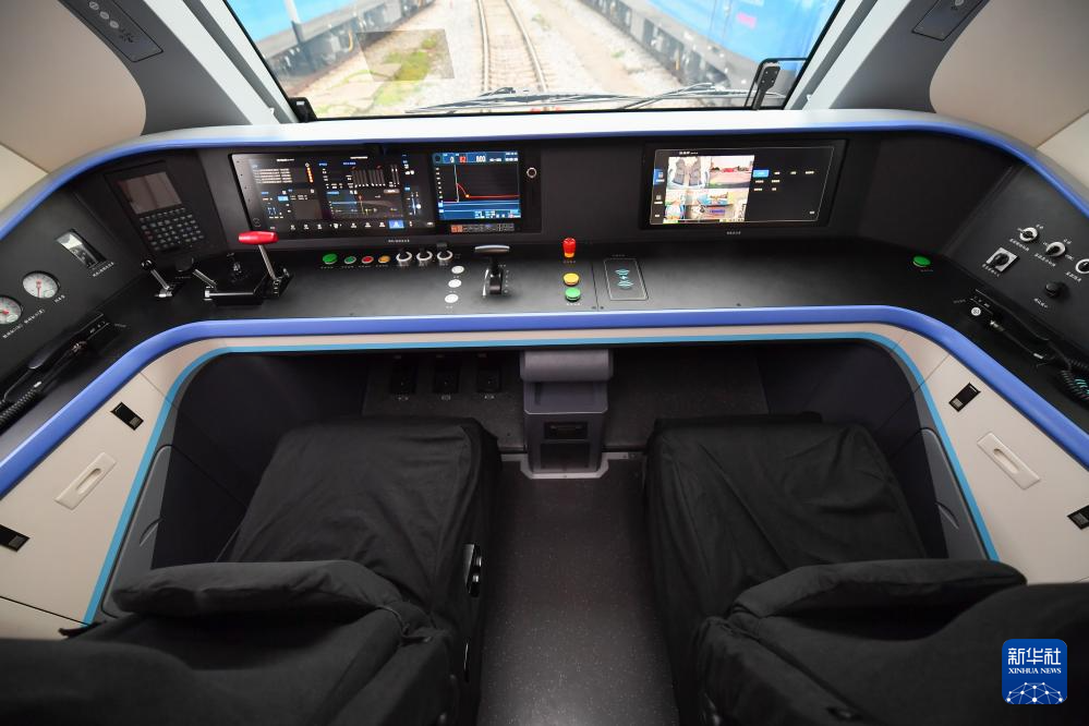 這是5月9日拍攝的國內(nèi)首臺新型智能重載電力機車的智能座艙一角。