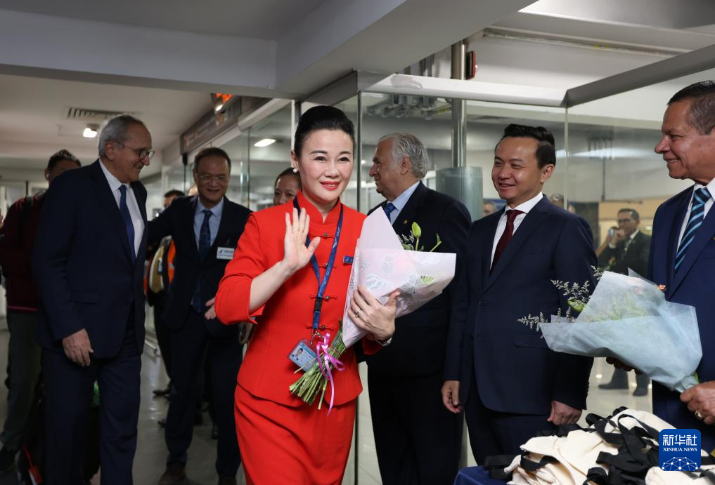 5月12日凌晨,嘉賓在墨西哥首都墨西哥城的貝尼托·華雷斯國際機場出席航線開通慶祝儀式。