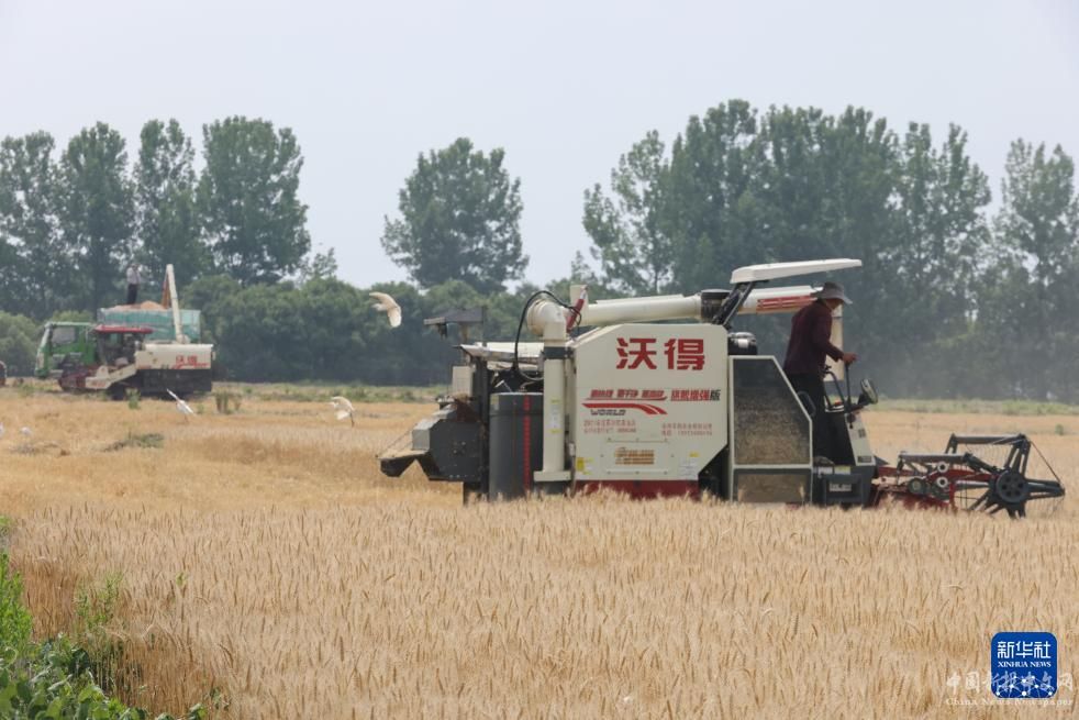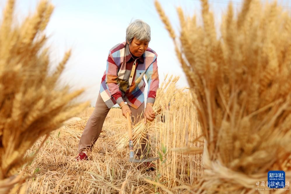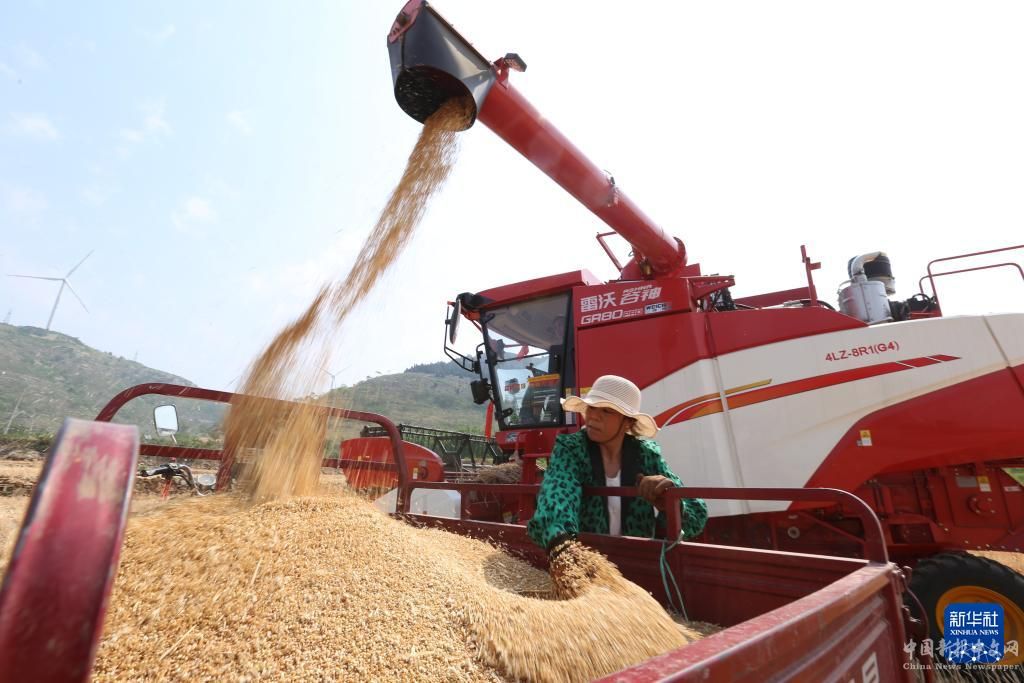 5月19日,在山東省棗莊市山亭區(qū)鳧城鎮(zhèn)文王峪村,農(nóng)民在收割小麥。