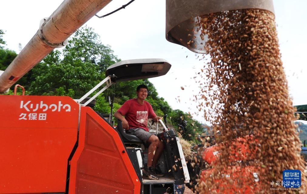 5月19日,在四川省達(dá)州市高新區(qū)金埡鎮(zhèn)龍坪村,農(nóng)民將剛收割的小麥裝車。
