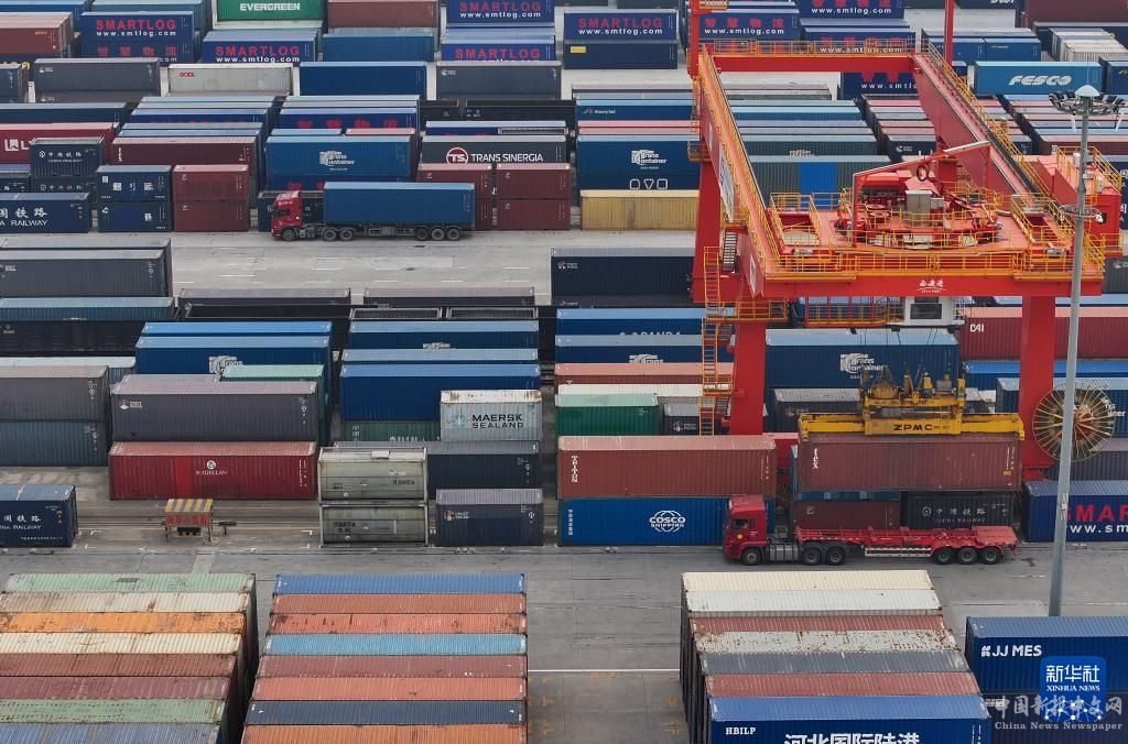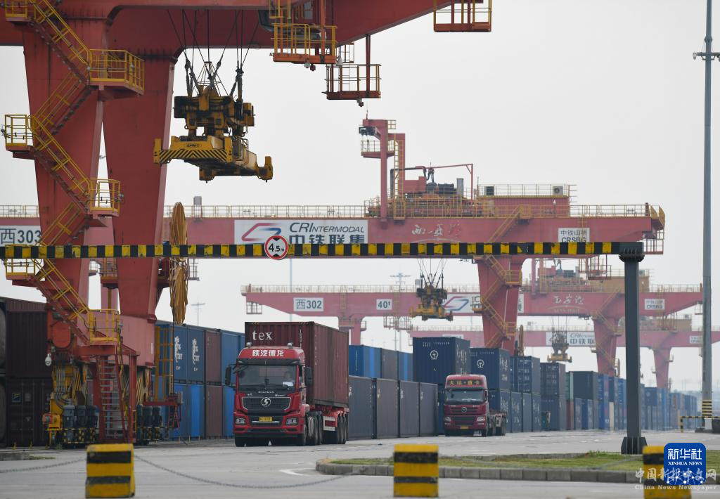5月25日,貨車在西安國際港站運(yùn)輸集裝箱。