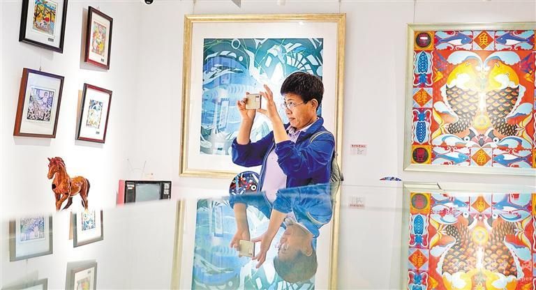 5月22日,游客在定海區(qū)新建村鄉(xiāng)村藝術(shù)館觀賞漁民畫(huà)。新建村通過(guò)鄉(xiāng)村藝術(shù)為村民搭建平臺(tái),拓展村民增收路徑。