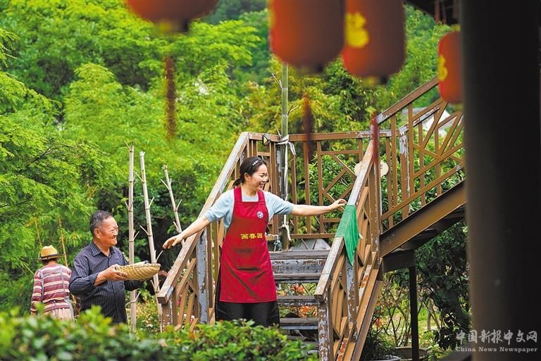 5月23日,定海區(qū)新建村村民袁其忠(中)在自家開(kāi)辦的農(nóng)家樂(lè)小院里忙碌。該村盤(pán)活閑置農(nóng)房、宅基地,打造住宿、餐飲一體化服務(wù),帶動(dòng)村民在家門(mén)口創(chuàng)業(yè)就業(yè)。