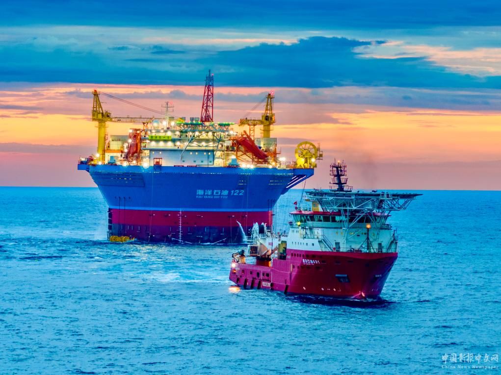 圖為“??惶?hào)”搭乘半潛運(yùn)輸船“新光華號(hào)”在運(yùn)輸途中。(中國(guó)海油供圖)