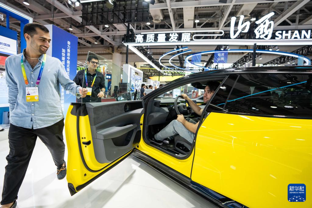 5月31日,觀眾在第十三屆中國(guó)中部投資貿(mào)易博覽會(huì)上體驗(yàn)展出的轎車。