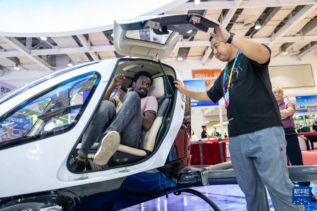 5月31日,觀眾在第十三屆中國(guó)中部投資貿(mào)易博覽會(huì)上了解載人無人駕駛航空器。