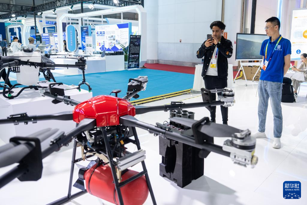 5月31日,觀眾在第十三屆中國(guó)中部投資貿(mào)易博覽會(huì)上了解低空飛行設(shè)備。