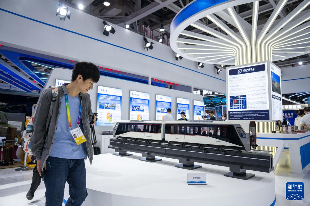 5月31日,觀眾在第十三屆中國(guó)中部投資貿(mào)易博覽會(huì)上了解輕型磁浮。