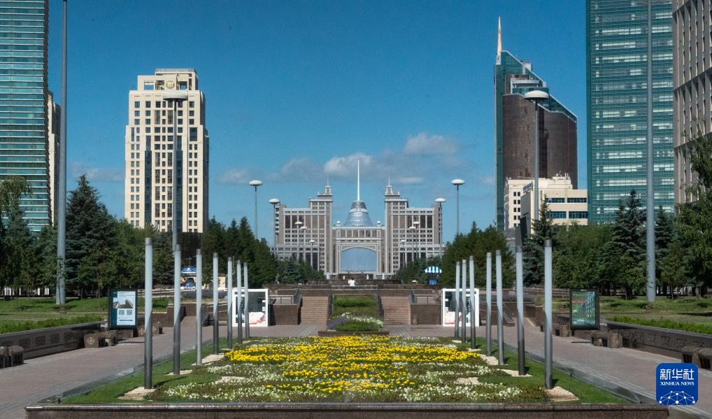 這是6月29日拍攝的哈薩克斯坦首都阿斯塔納獨(dú)立廣場(chǎng)一景。