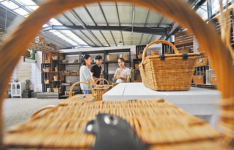 7月11日,位于“好日子”示范區(qū)的歐拉公司柳編展廳,顧客在選購(gòu)柳編產(chǎn)品。公司如今已形成從種植、設(shè)計(jì)、加工到銷售的柳編全產(chǎn)業(yè)鏈模式,吸納周邊村民就業(yè)超千人。