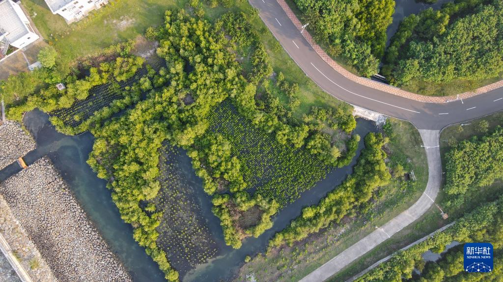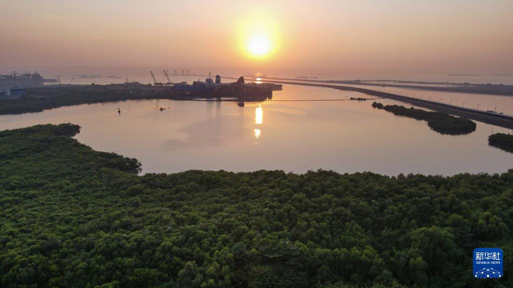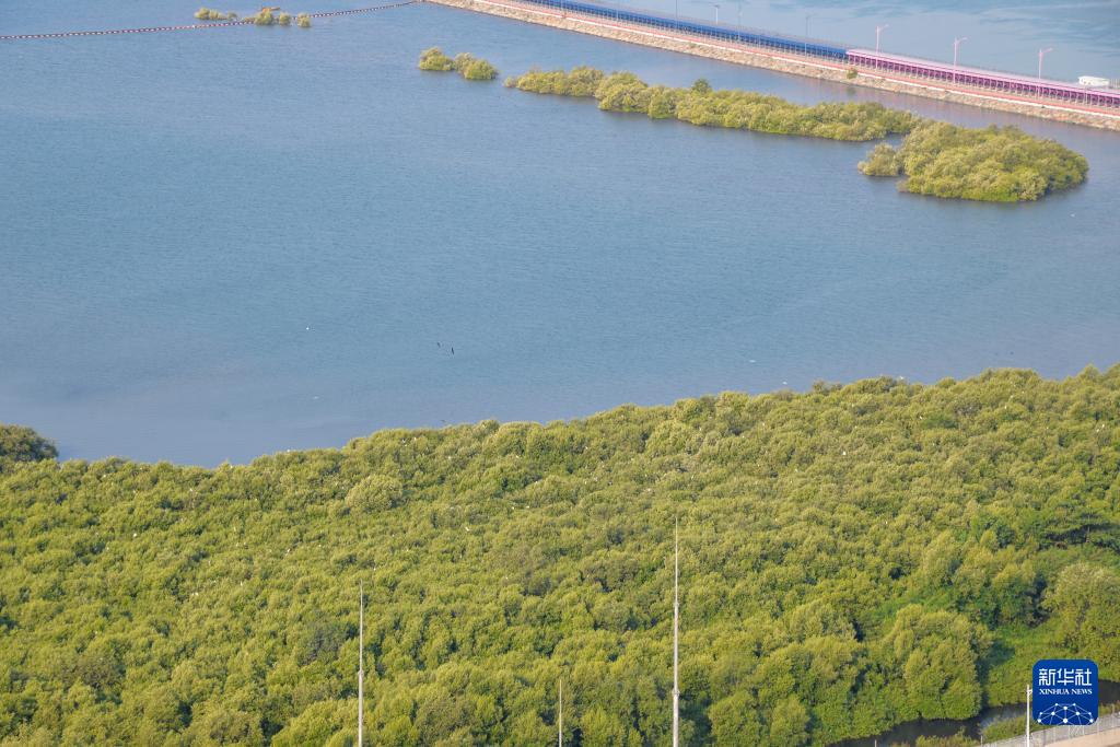 這是7月15日在印度尼西亞萬丹省西冷爪哇7號項目附近海域拍攝的紅樹林(無人機(jī)照片)。