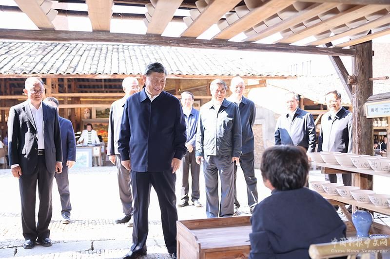 △2023年10月11日,習(xí)近平總書記在江西景德鎮(zhèn)市陶陽里歷史文化街區(qū)考察時(shí),同非遺傳承人親切交流。