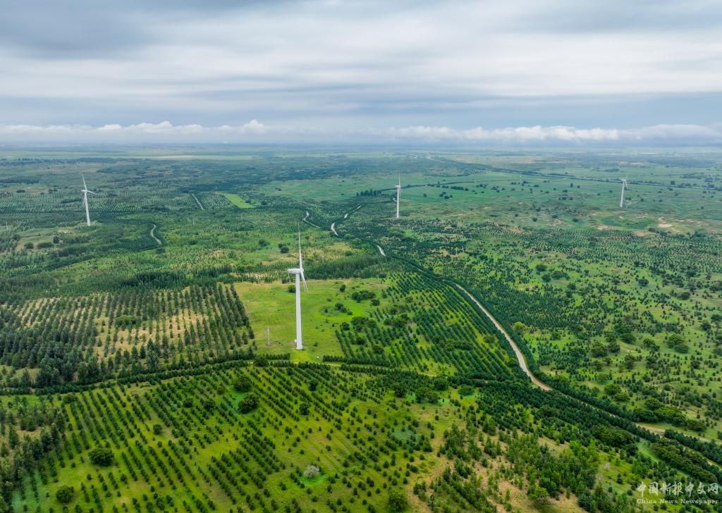8月14日,內(nèi)蒙古通遼市科爾沁左翼后旗,科爾沁沙地“雙百萬畝”綜合治理工程努古斯臺項目區(qū)內(nèi)綠意盎然。新華社記者 連振 攝