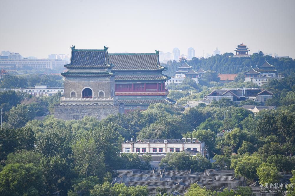 遠(yuǎn)眺北京中軸線上的鐘鼓樓與景山(2024年7月20日攝)。新華社記者 陳鐘昊 攝