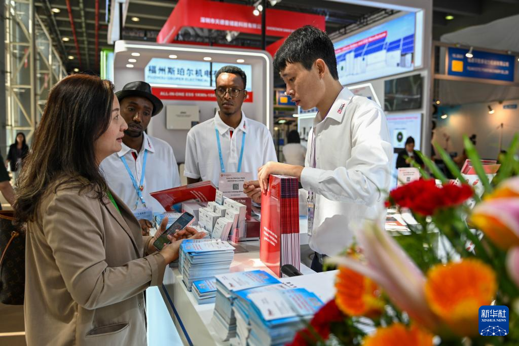 4月16日,參展商在第137屆廣交會的新能源展區(qū)向客商展示產(chǎn)品。