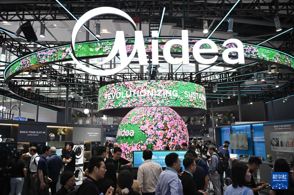 這是4月15日拍攝的第137屆廣交會智慧生活專區(qū)的美的展臺。