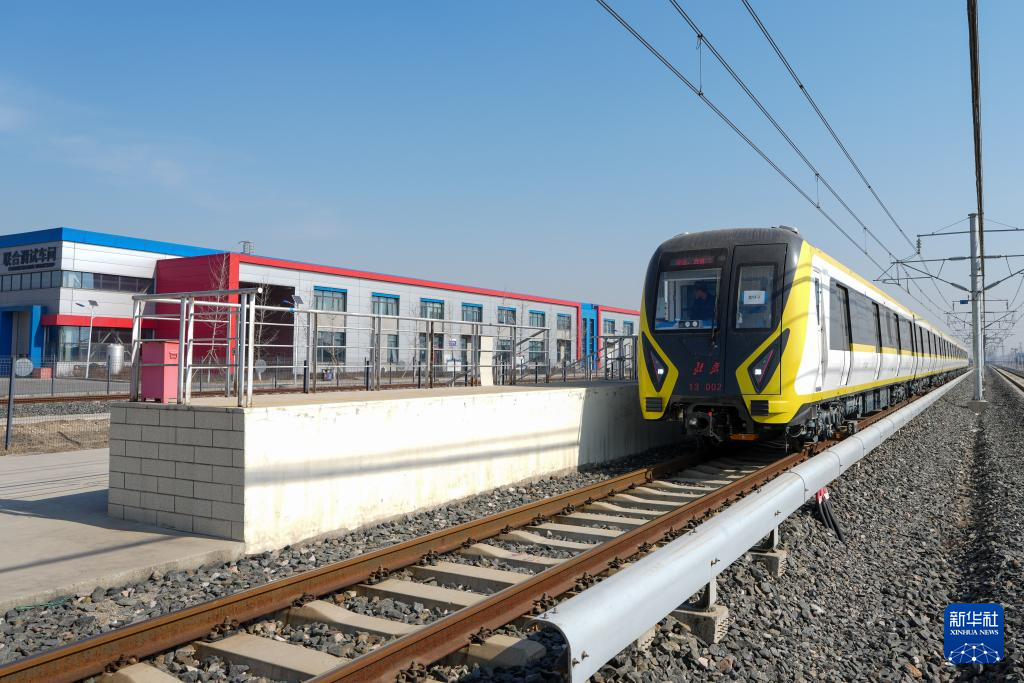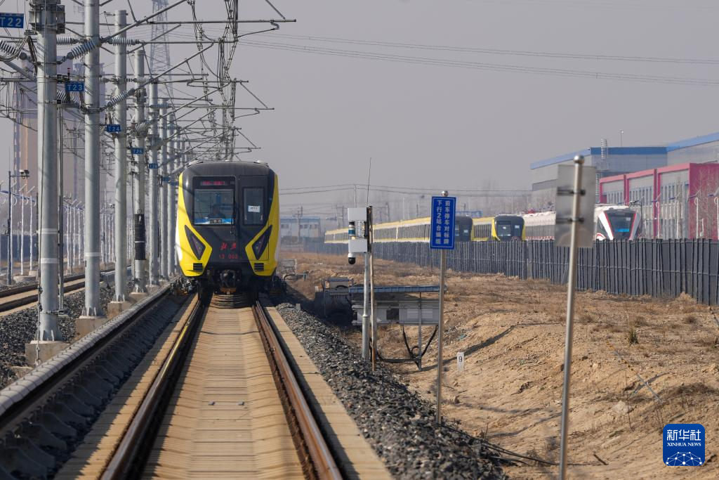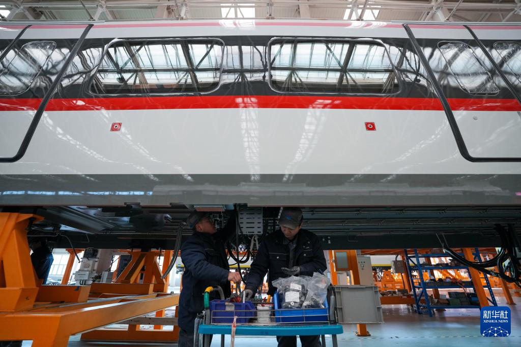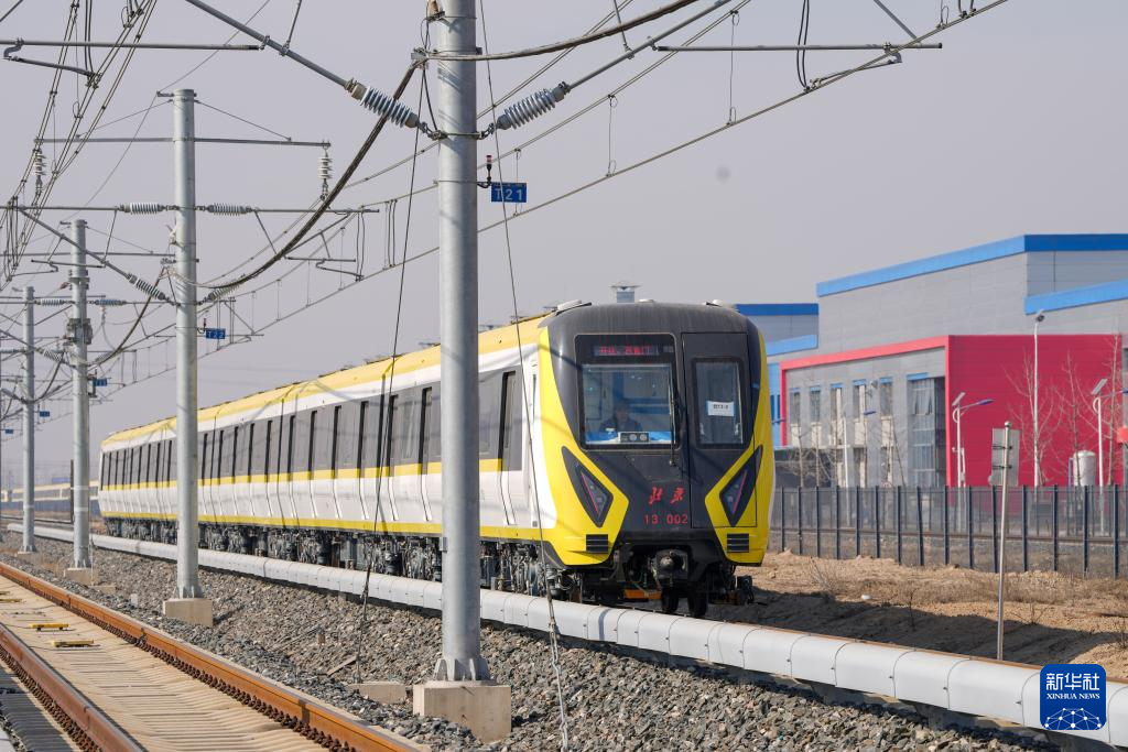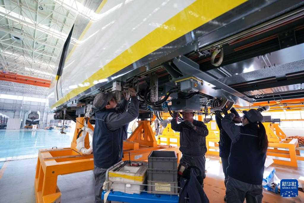 在京投裝備河北京車智能制造基地內(nèi),工作人員在進(jìn)行北京地鐵13號(hào)線新款地鐵列車的調(diào)試工作(2月14日攝)。