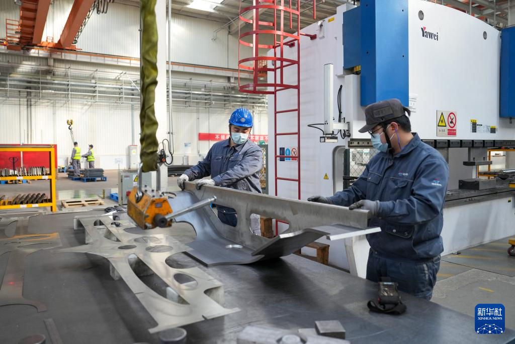 在京投裝備河北京車智能制造基地,工作人員在加工地鐵車輛零部件(2月14日攝)。