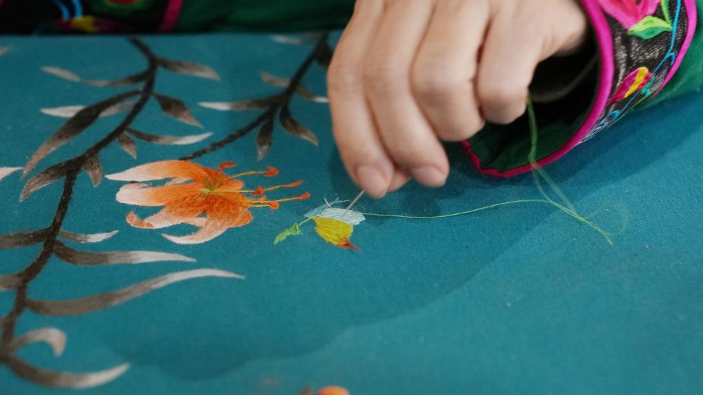 王桂珍說(shuō),兼職做刺繡也要慢工出細(xì)活,一個(gè)看似簡(jiǎn)單的圖案往往需要兩天才能完成。新華社記者 恩浩 攝