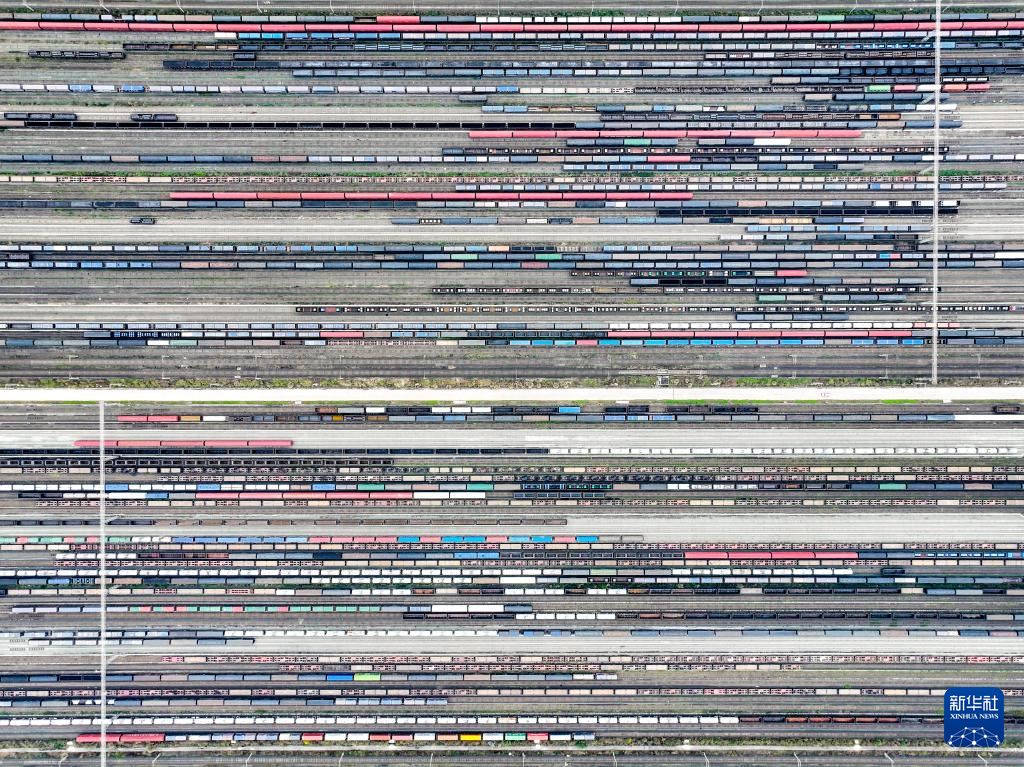 3月7日,擴(kuò)容后的重慶興隆場(chǎng)站鐵路編組站在進(jìn)行貨物列車(chē)解編作業(yè)(無(wú)人機(jī)照片)。