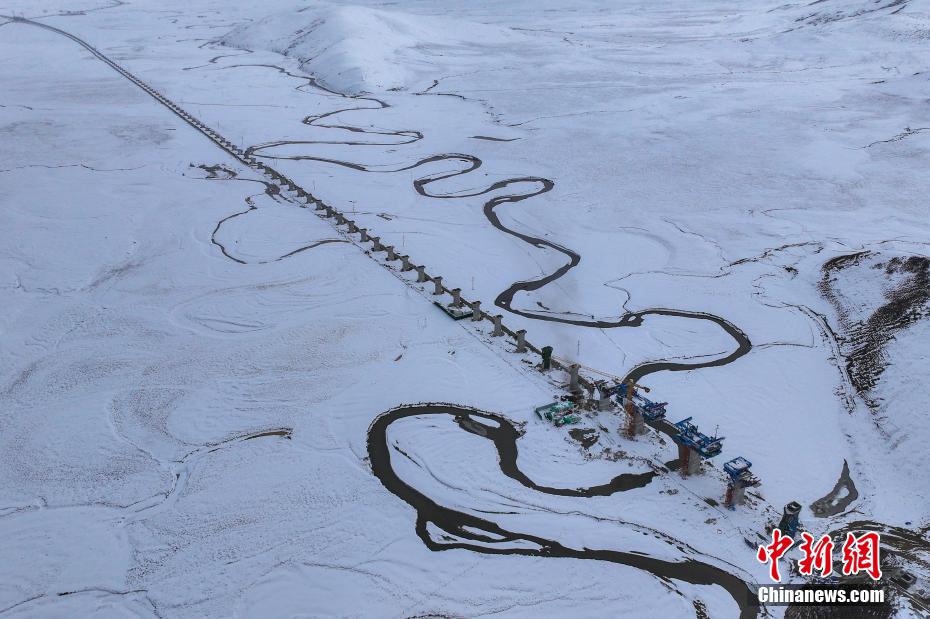 3月17日,四川若爾蓋,航拍雪中正在建設(shè)的西寧至成都鐵路四川若爾蓋段。當(dāng)日,青海西寧至四川成都鐵路班佑1號(hào)隧道最后一米巖壁成功鑿穿,這是新建西寧至成都鐵路四川段貫通的首座隧道,標(biāo)志著全線隧道施工進(jìn)入攻堅(jiān)階段。西寧至成都鐵路是我國(guó)“八縱八橫”高鐵網(wǎng)蘭州、西寧至廣州的蘭(西)廣通道的組成部分,全線絕大多數(shù)路段在海拔3500米左右。(無(wú)人機(jī)照片)